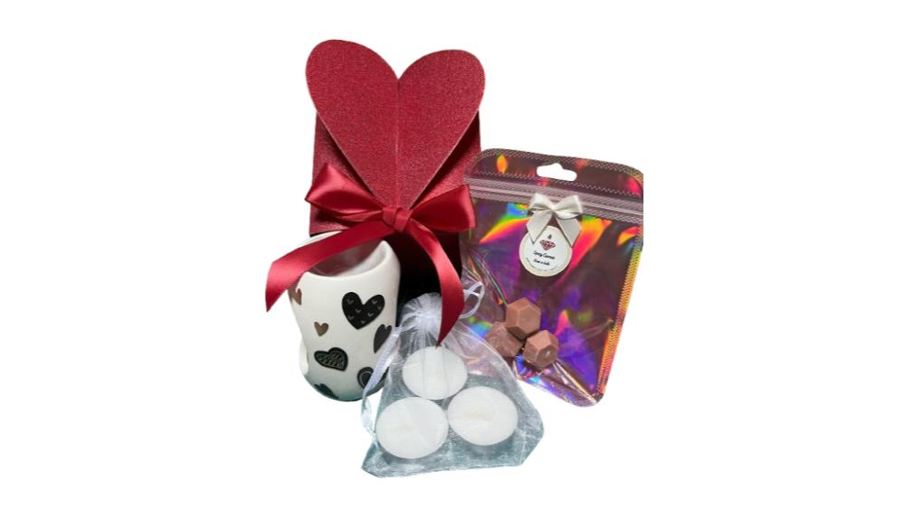 Say ‘I love you’ in the most stylish way with this Elegant Glitter Love Red Gift Box! Featuring a heart on top, it includes a wax burner, one pack of 3 wax melts from the Gem Collection, and a pack of tea lights—perfect for your Valentine!